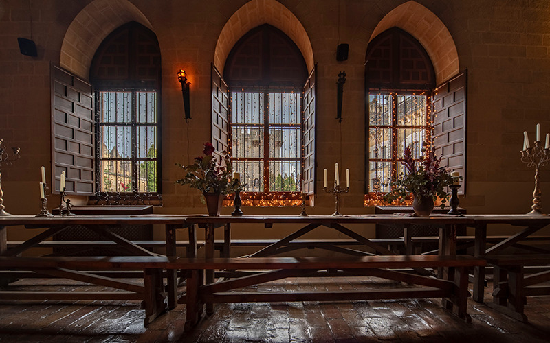 La mazmorra, el armero, la exposición de espadas o el Salón del Trono en la Torre del Homenaje son algunas de las estancias tematizadas que podrás disfrutar en nuestras instalaciones.