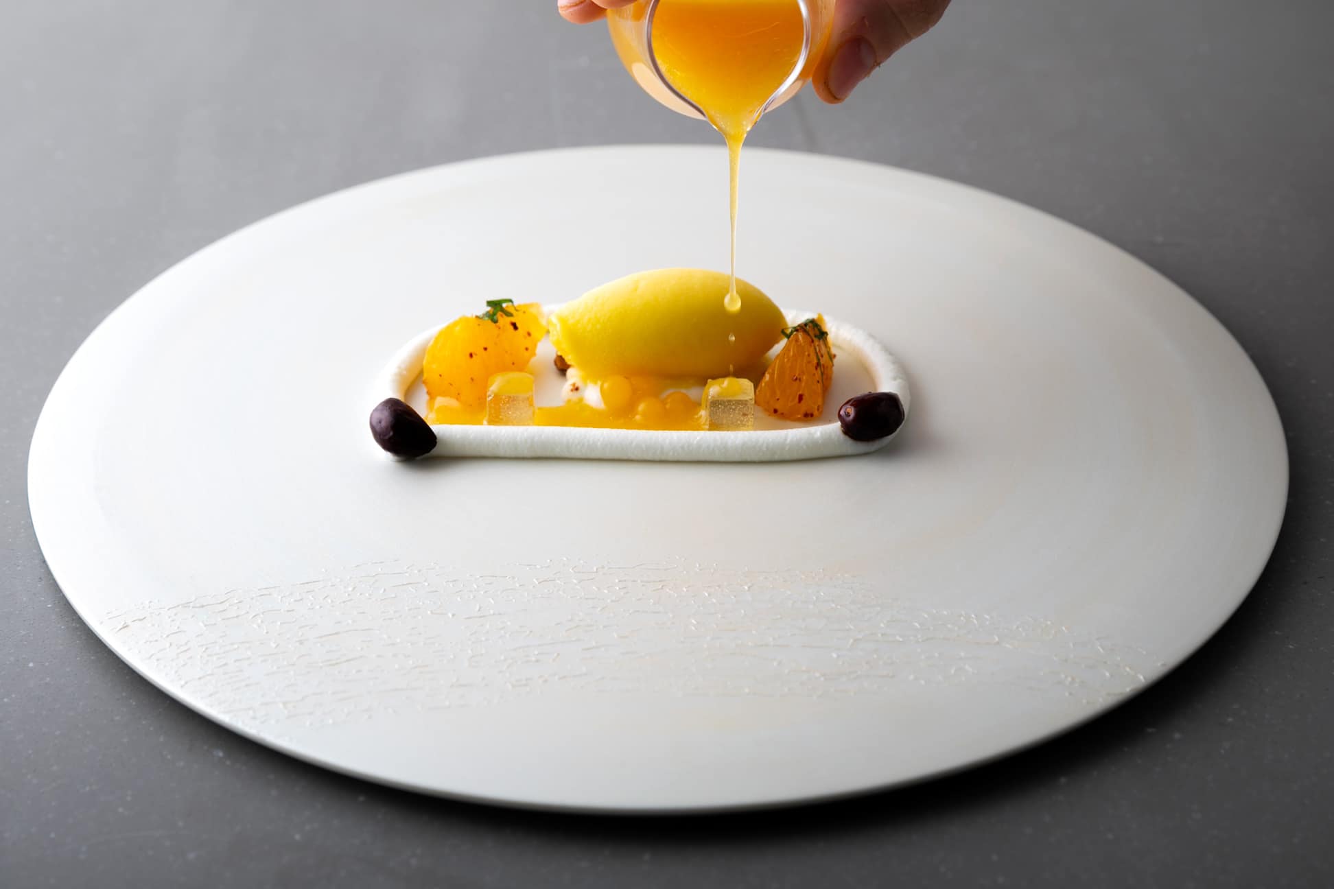 KARIM DE SÉSAMO blanco con su helado, manzana verde y Caviar del DESIERTO